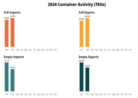 In February 2024, the Port of New York and New Jersey saw notable growth across various metrics, including total volume, imports, exports, rail, and auto shipments, marking it as the second-busiest Fe