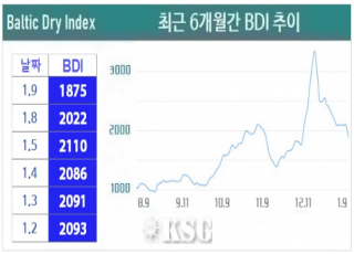 BDI 1875???…?? ??? ?? 1?9? ???? ????(BDI)? ???? 147??? ??? 1875? ????. ?? ?? ??? ???? ????(FFA) ??? ??? ???