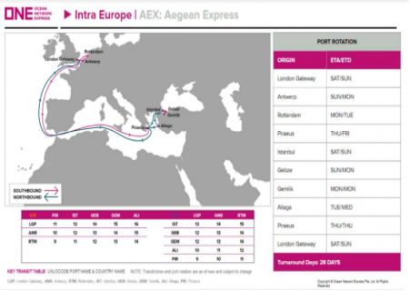 Ocean Network Express (ONE) will launch two new Northern Europe/Mediterranean services, Aegean Express (AEX) and Levant Express (LEX) in January 2025. “Our AEX and LEX services both offer e